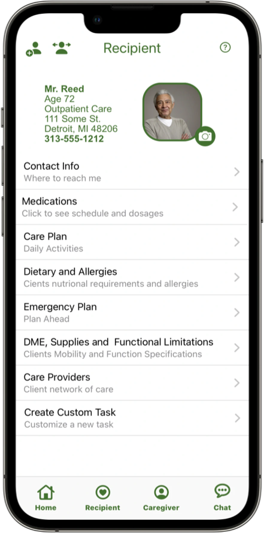 An app to assist caregivers, which gives caregivers the ability to quickly organize and delegate the care of loved ones within the recipient care network.